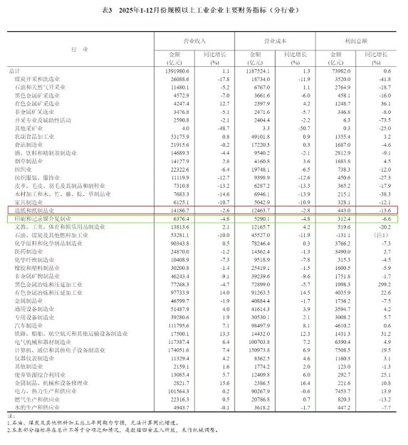 当前位置:首页>>中文版>>新闻中心>>行业新闻 » 2025年造纸和纸制品业实现利润总额443.0亿元 同比下降13.6%