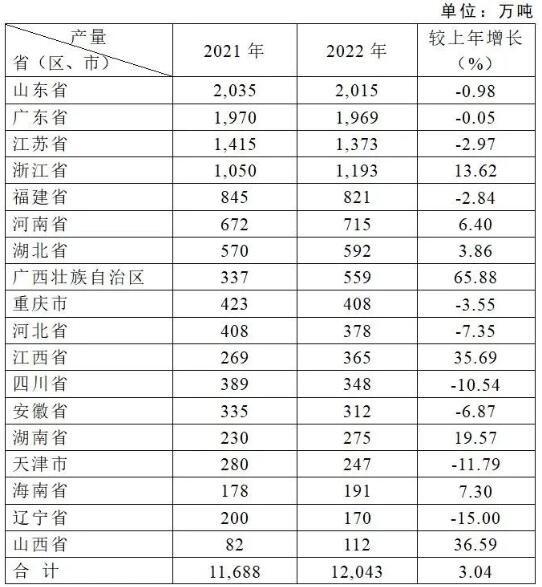 (2022年纸及纸板产量100万吨以上的省(区、市))