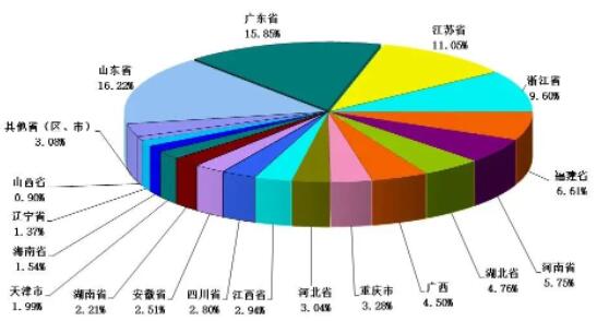 2022年,山东省、广东省、江苏省、浙江省、福建省、河南省、湖北省、广西壮族自治区、重庆市、河北省、江西省、四川省、安徽省、湖南省、天津市、海南省、辽宁省和山西省18个省(区、市)纸及纸板产量超过100万吨,产量合计12043万吨,占全国纸及纸板总产量的96.92%。