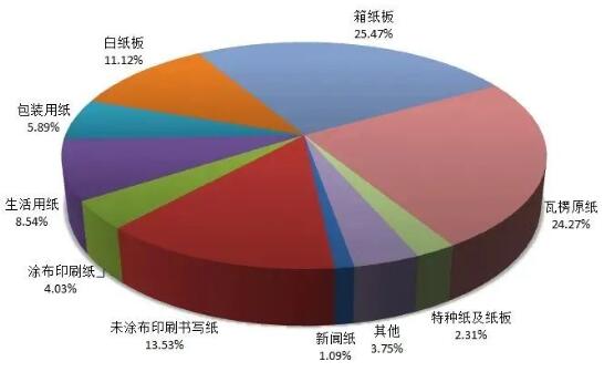其中,主要包装纸类——瓦楞纸、箱板纸、白板纸的年产量及消费量如下: