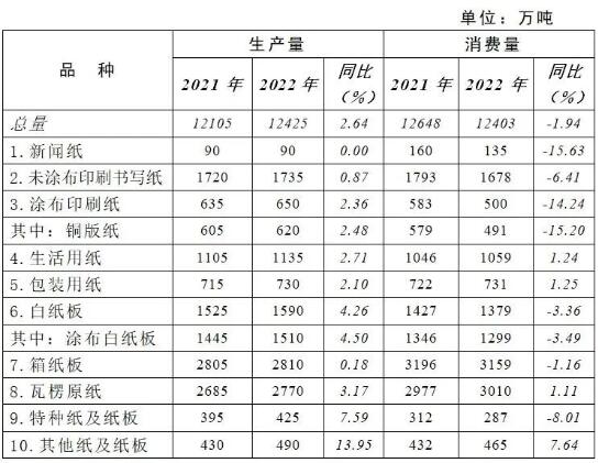 ( 2022年纸及纸板生产和消费情况)