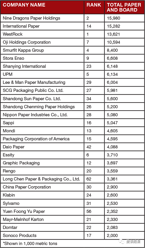 当前位置:Home > 中文版 > 新闻中心 > 行业新闻 > » 全球造纸企业75强名单发布,中国企业表现如何?